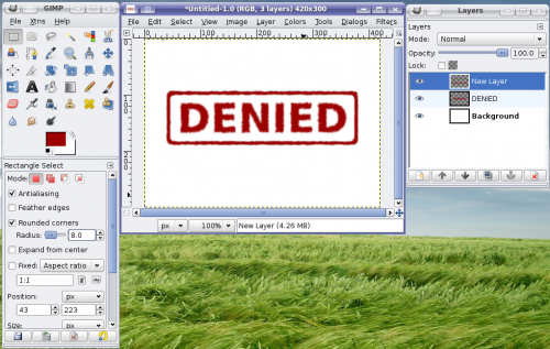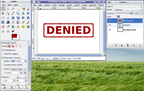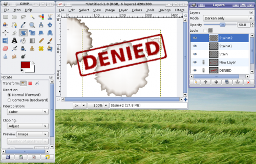Note: You could also hide the background layer and merge visible layers to apply the effects to both layers at once. The thickness of the text vs border will produce different effects, so I find it best to apply the slur and oilify effects to the layers seperately. This is especially true if you have different sized text in the stamp. In the final image here I applied a slight blur to the stamp border so it more closely matched the text.